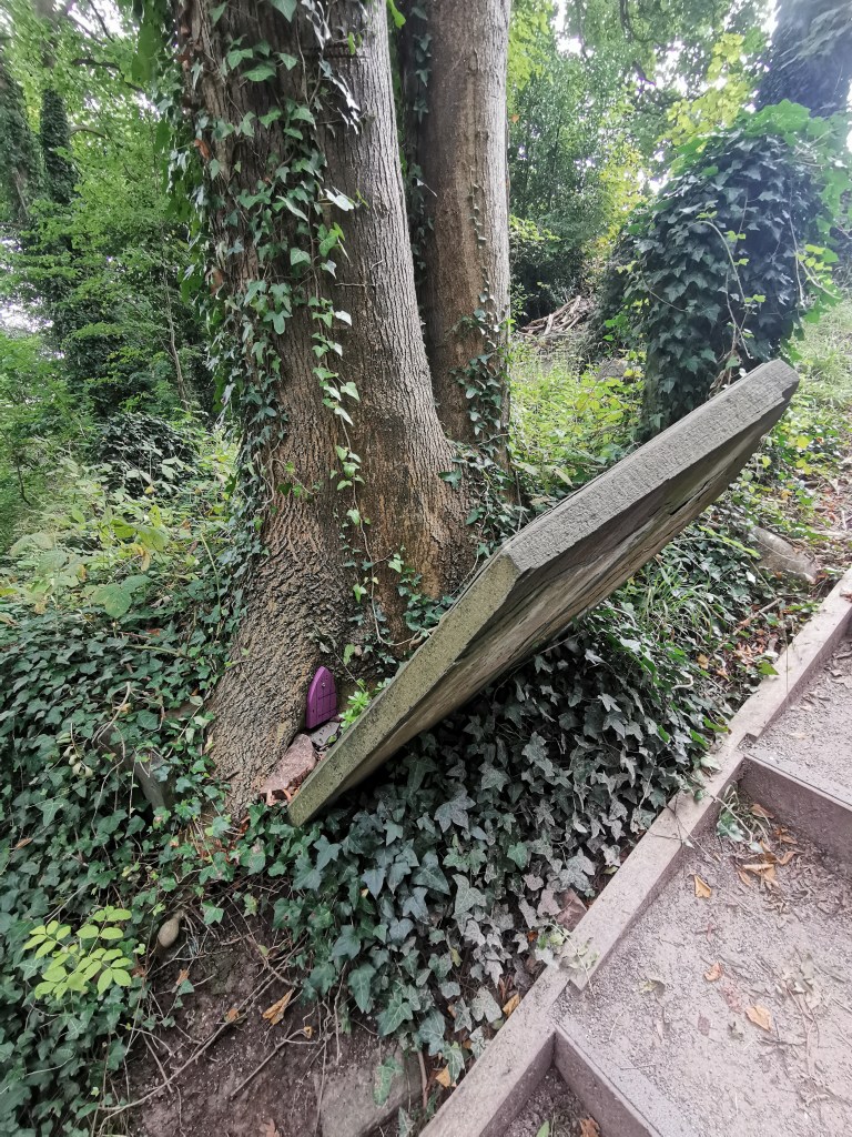 The cemetery is not only home to the departed. If you look for them, you will find the occasional fairy door hidden in the trees. We managed to find eight. I would like to think they’re the ones who are leaving the cups of tea.