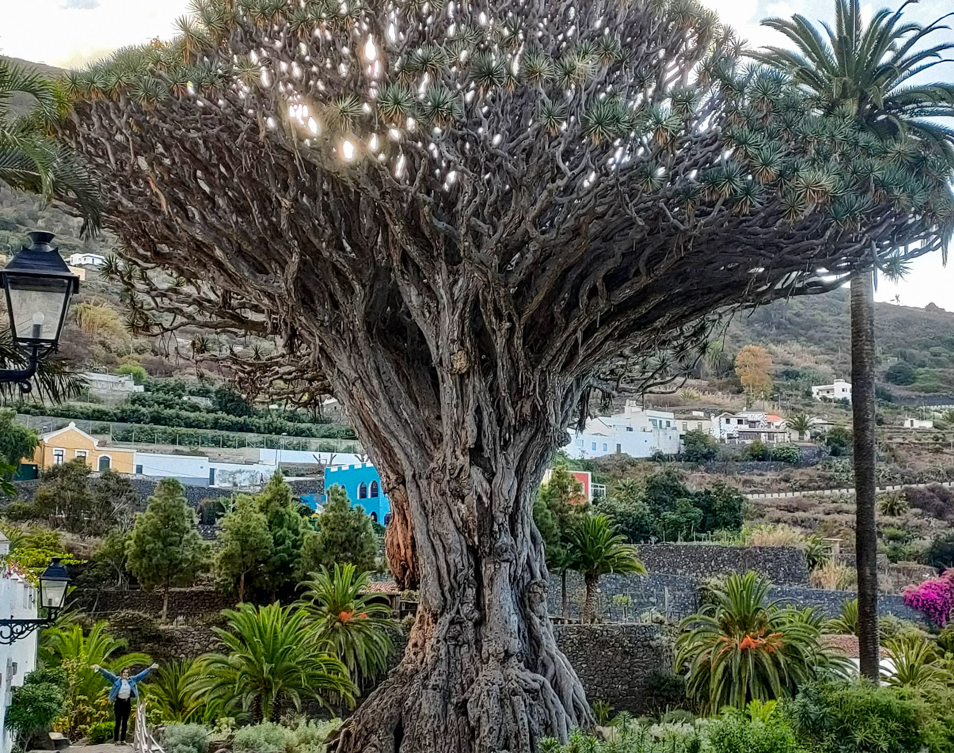 The Dragon Tree stands at 21m (69 ft) and has a girth of 20m (66 ft). For reference to the photo above, I’m 5’2. This type of tree thrives in a warm and dry environment. Anyone who has visited Tenerife can definitely agree this is the perfect place for it.