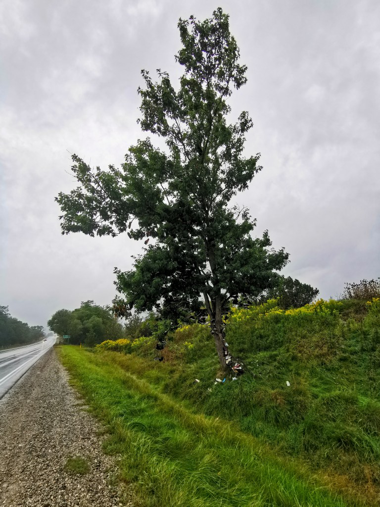 The second tree in this post is not even nearly as impressive but it’s fun to see. This is Ontario’s Shoe Tree which is probably exactly as you would imagine. Over the years Canadians have been tying their shoe laces together and getting them stuck in this tree, to remain there for the rest of their days. This is just on the side of a main road and serves as a fun land mark for those travelling. I was wearing flip flops at the time and still being quite early on into my journey, I don’t have any shoes to throw. It reminds me of the shoe fence and abandoned toilet I saw when I visited Wave Rock in Australia.