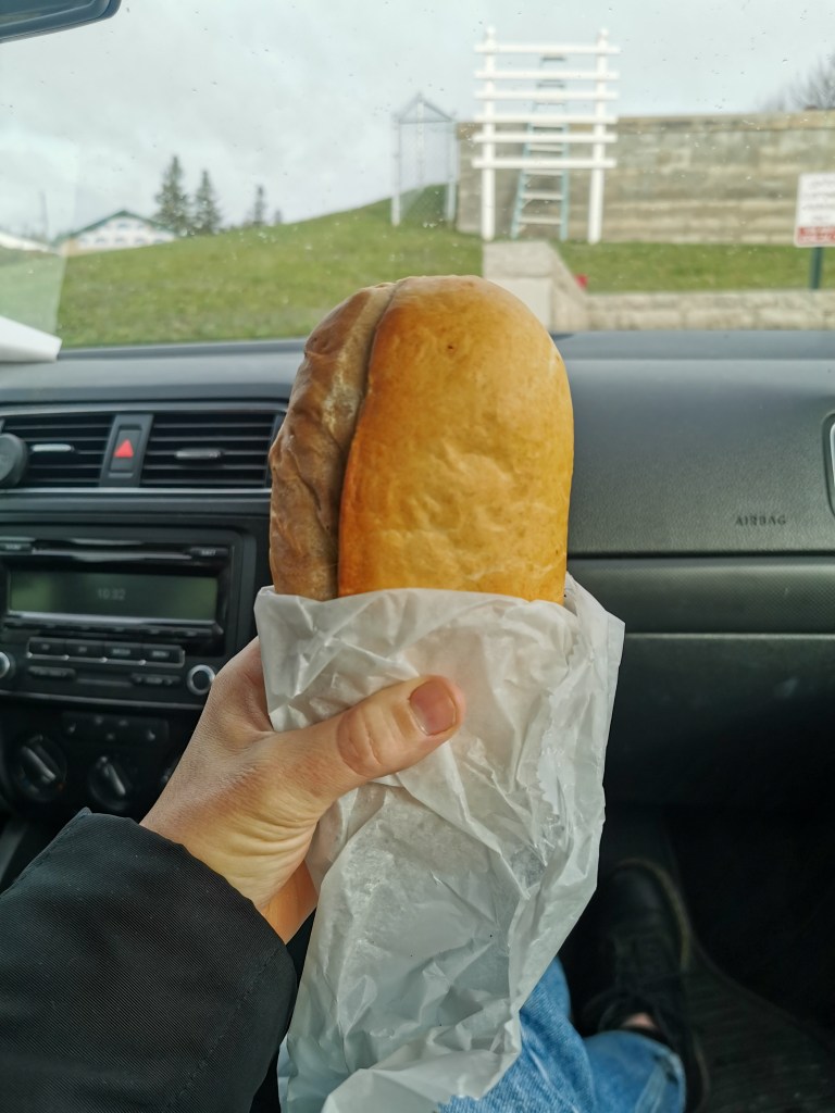 The next day we set off early, eager to find some breakfast and make sure we had plenty of time for the ferry. It was a bit of an odd choice for breakfast but as not many places were open, we stopped at Lethos pasty shop for two chicken pasties.