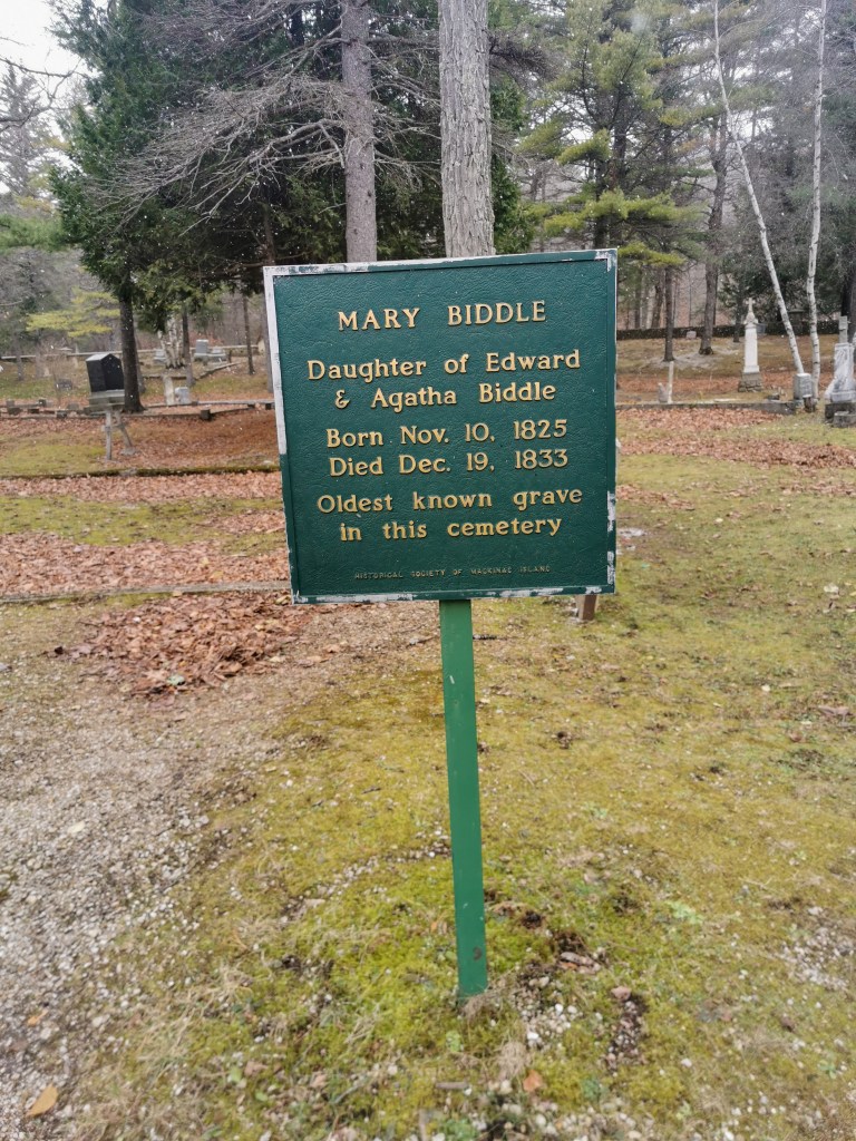 One of the oldest headstones in the cemetery belongs to Mary Biddle. She was only eight years old when she fell through the ice and unfortunately died in 1833.