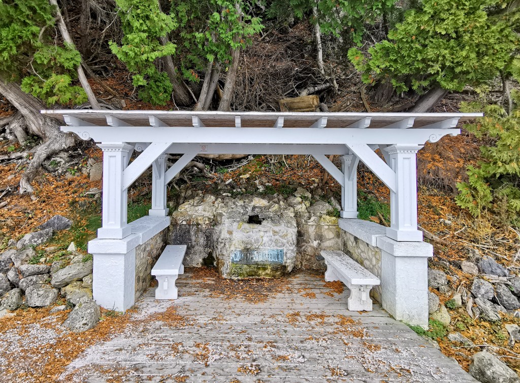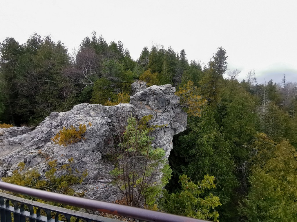 This cave also served as a hiding place for fur trader, Alexander Henry during Pontiac’s rebellion in 1763. Although you can see a path leading up to the cave, it is prohibited to pass the fence guarding it.