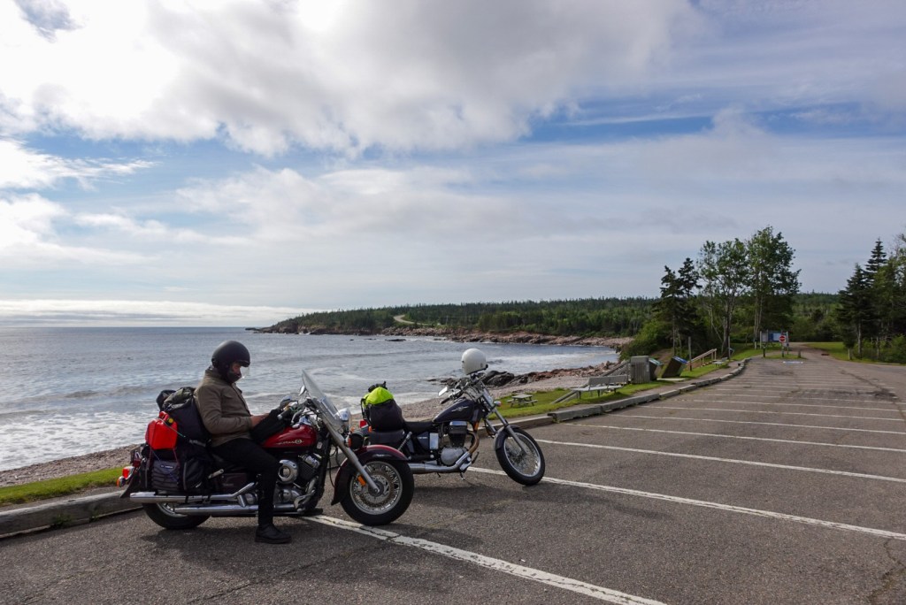 As promised, we got our rain so after an hour of riding in it, we stopped for a coffee and something sweet. It seemed we had chosen the busiest Tim Hortons in Canada and then we had to wait 20 minutes for the cookies to be baked. A little annoying when we don’t have the time to spare, but getting a cookie fresh out the oven was worth it.